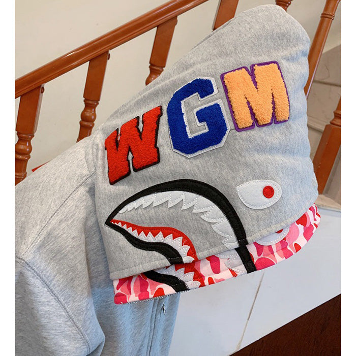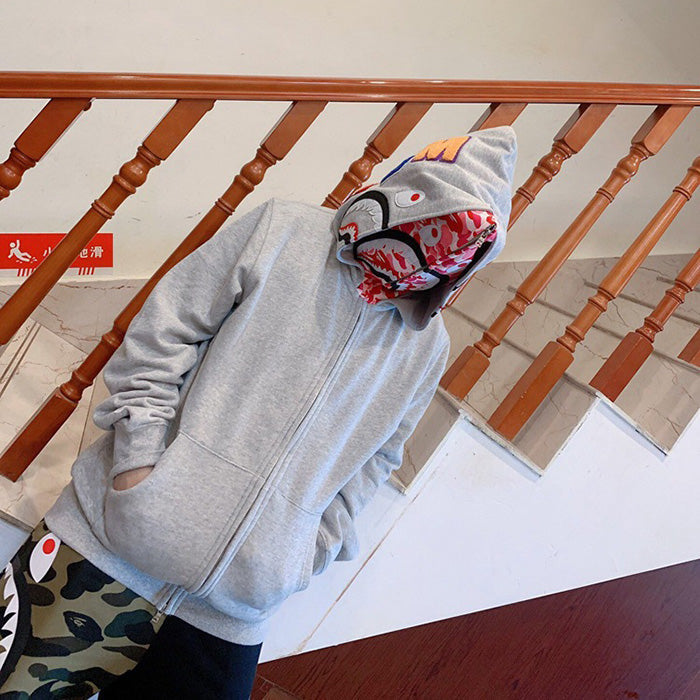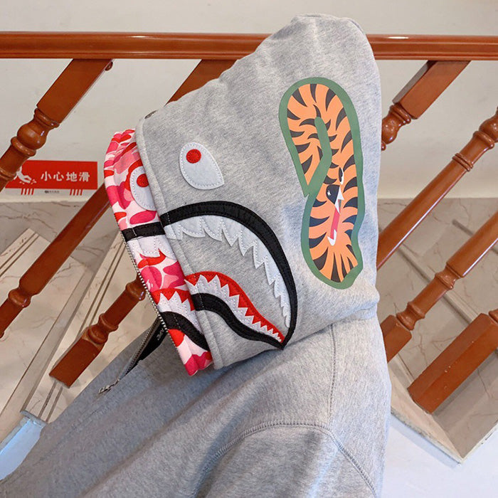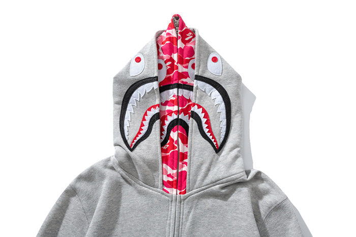 BAPE Double-hat Big Camo Shark Hoodies Grey