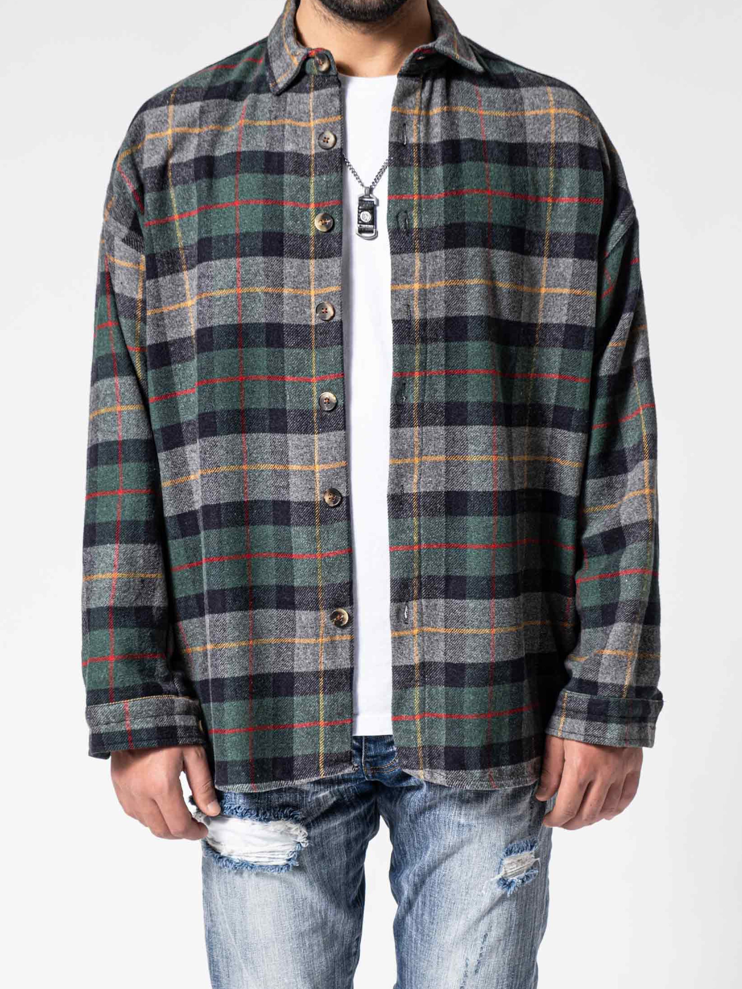 Flannel Shirt is made from high-quality custom plaid is a woven fabric. It has a casual oversize fit and dropped shoulders. The shirt has pleats at the waist, an adjustable button closure.
