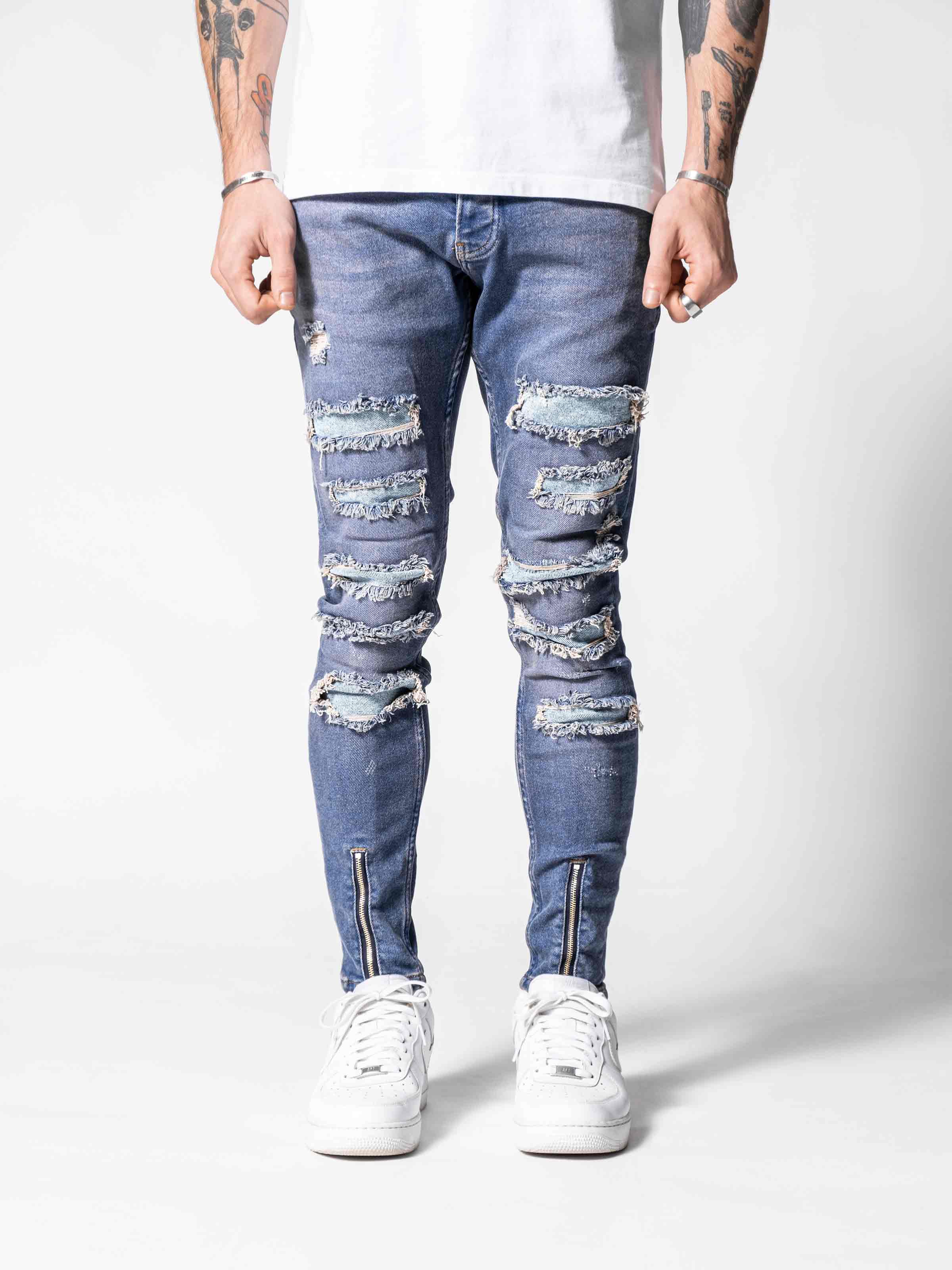 Inside Out Jeans are made from high-quality stretchy denim fabric. It is skinny-fit denim jeans and it gets skinnier through to ankles with zipper details on both legs. The main specs of these jeans are rips and repairs in front of both legs.