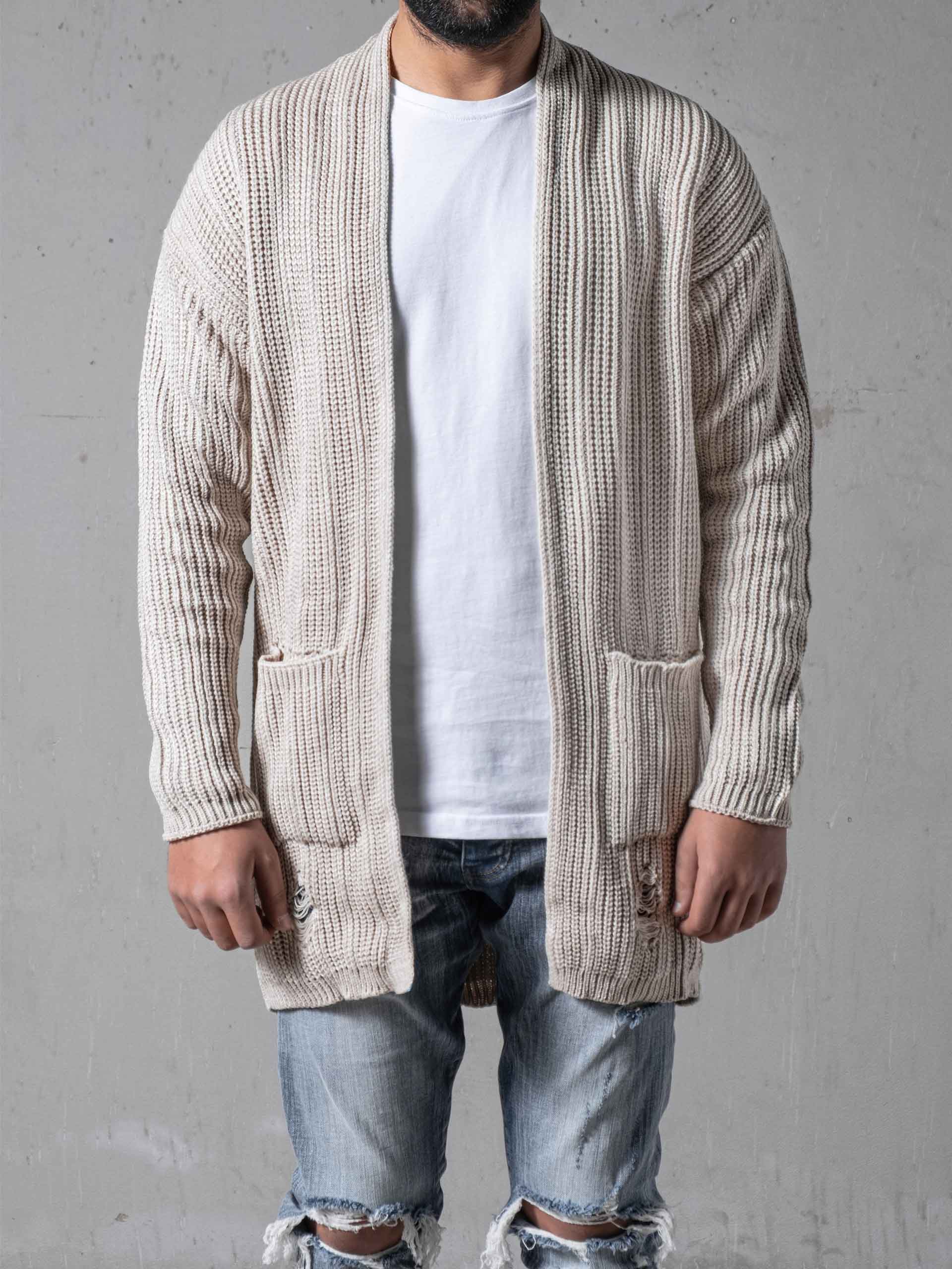 White Cardigan is made from non-sweat thread acrylic. It has pockets on the front, and has no buttons.